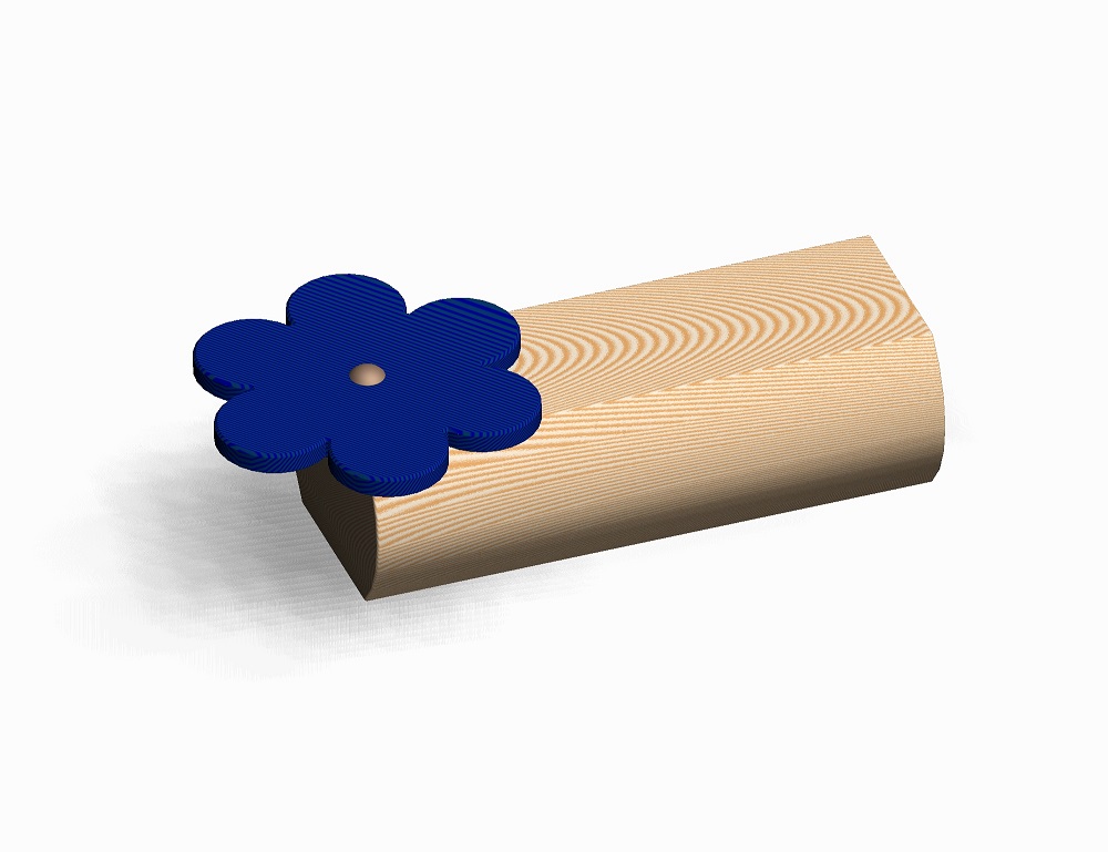 Naturbel. Eiche-Stamm, splintfrei geschält, geschliffen und lasiert, obere und untere Seite abgeflacht, Sitzfläche ca. 25-30 cm breit, an einem Ende massive Eiche-Platte in Blumenform gestaltet, als zusätzliche Sitz- und Spielfläche.