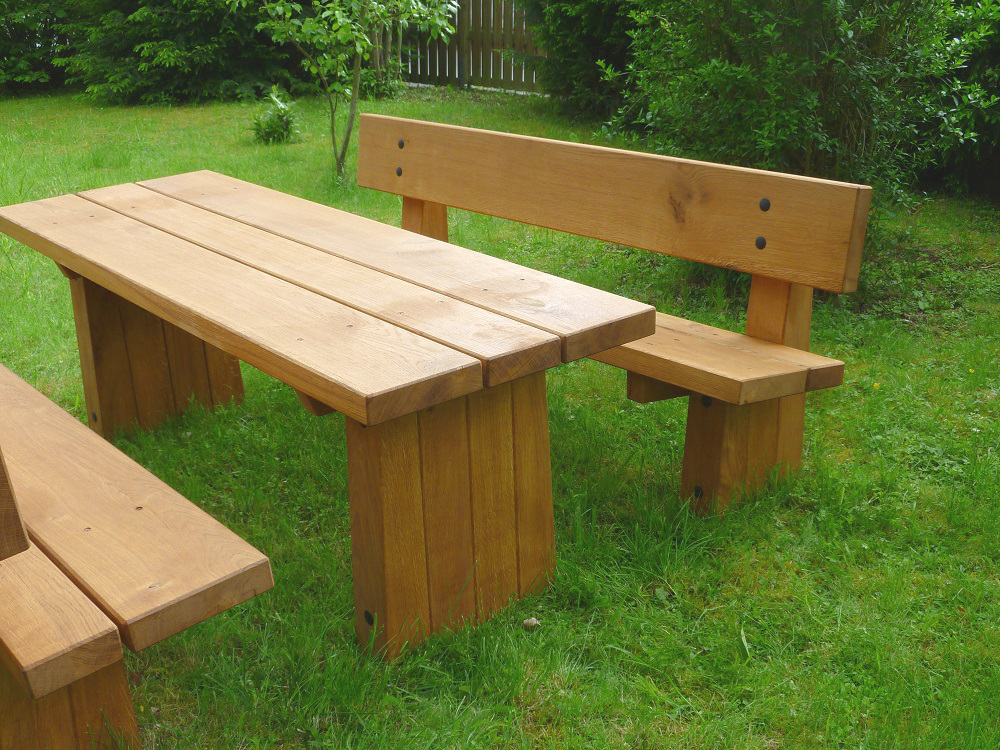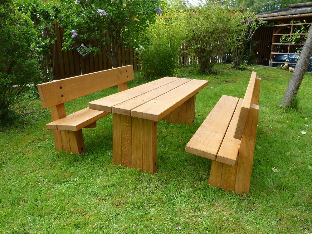 | Maße: | Bank: L 200 cm B 50 cm Sitzhöhe 45 cm Tisch: L 200 cm H 70 cm |